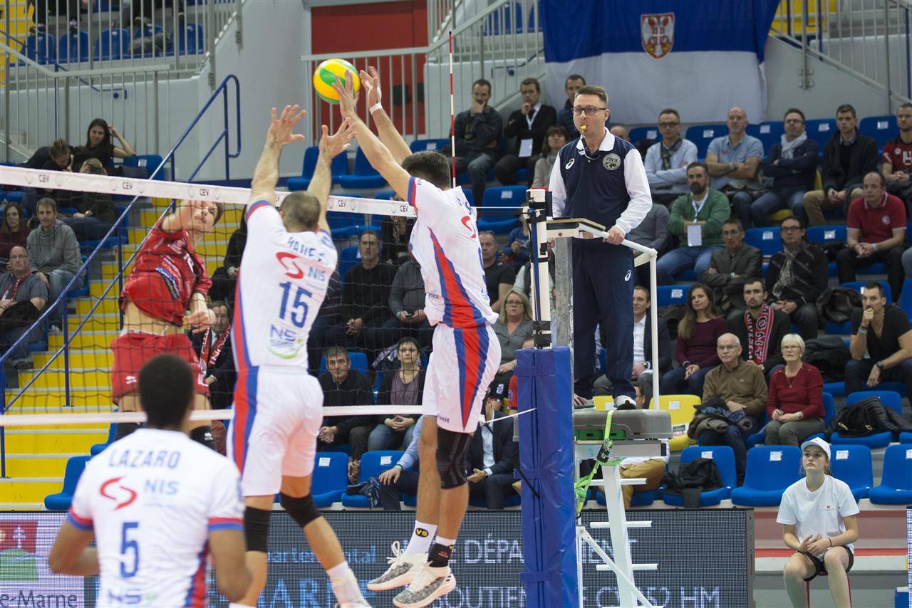 Le deuxième set ayant été plus facile que le premier, le CVB doit-il s’attendre à une réaction. Pas tout de suite apparemment. Les serveurs chaumontais comprennent que les problèmes des serbes viennent d’un manque de maîtrise sur service flottant. Encore faut-il mettre un peu d’intention dans ce geste. Le CVB se rattrape avec la vista de Winkelmuller. West en trois fois, mais point finalement. Bloc de Fernandez. Temps mort Novi Sad (8/5). Au tour précédent, Teruel rivalisait davantage donnant l’impression de céder à l’approche des fins de set. Par petites touches mais avec conviction, les serbes reviennent pourtant en milieu de set (10/10). Patak cède doucement à l’aile et voici Novi Sad devant (10/11). West dévisse deux fois en attaque. Dommage car les Serbes allaient prendre un nouveau coup sur la tête (13/14). Atanasov le remplace. Le bulgare attaque sans forcer mais ne commet pas la faute. Pour la première fois, l’on sent le CVB en danger. Les échanges s’allongent. Repak la joue fine en déposant un ballon dans la zone morte du terrain (16/16). Temps mort Chaumont. Les Serbes défendent mieux avec des balles de transition jouées plus sereinement qu’au cours des premiers sets (17/18). Le bloc du CVB attrape encore Lazaro (20/19). Occasion manquée pour le CVB mais heureusement, le service ne roule pas fort à Novi Sad. Atanasov, sans forcer ses attaques, provoque le premier break dans cette fin de manche (23/21). Atanasov donne la première balle de match (24/22). Patak finit la partie sur une attaque au centre depuis les trois mètres (25/23).