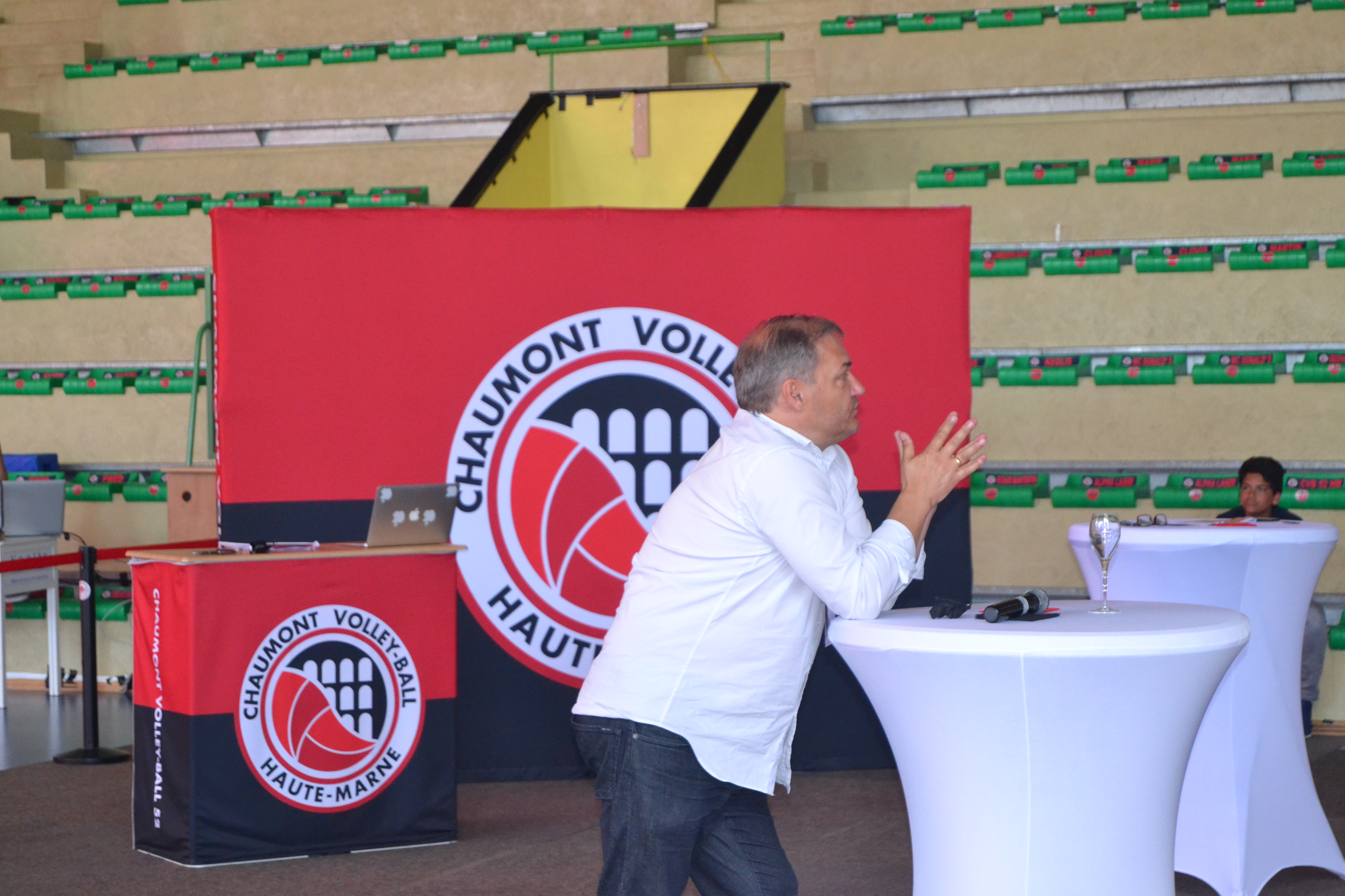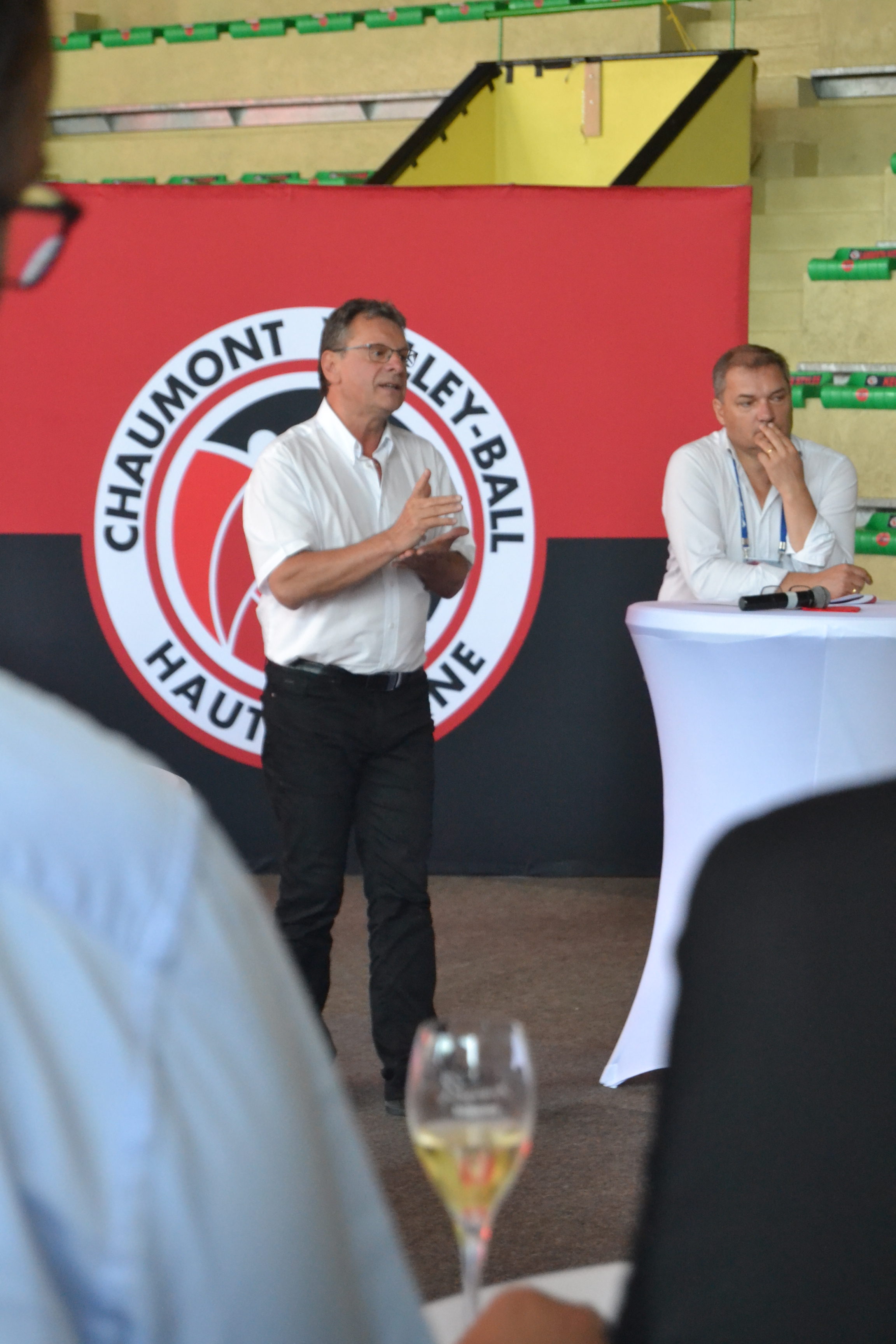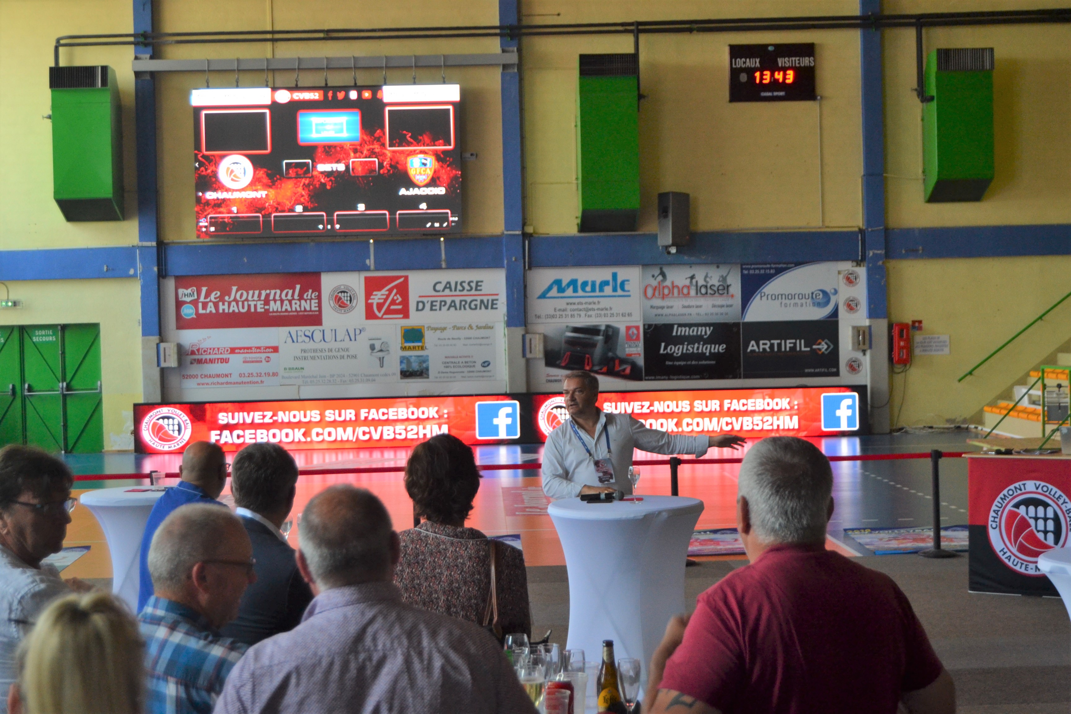 Après avoir fait un bilan de la saison passée, le président Bruno Soirfeck a évoqué les nouvelles offres de partenariat pour la prochaine saison. L’avenir étant aussi la future salle, M. Babouot, vice-président de l’Agglomération de Chaumont est venu évoquer les avancées du chantier du Palestra. Près de 70 personnes ont assisté à ces différentes interventions, toujours très applaudies. Enfin, ce fut également l’occasion pour nos partenaires de se retrouver ou de rencontrer, ceux qui intégreront bientôt le Chaumont Volley-ball 52 Business Club.