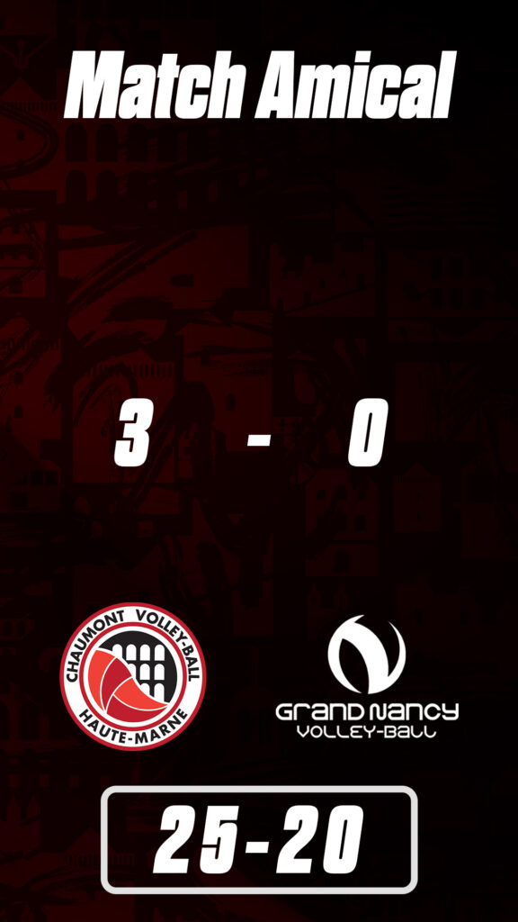 Chaumont reprend l’avantage à 3 longueurs de la fin de ce set mais Nancy résiste aux assauts répétés de Toledo au service. Le CVB52 ne se fera pas prier à scellera le sort de ce premier set rapidement sur une faute directe du GNVB, 25-23.