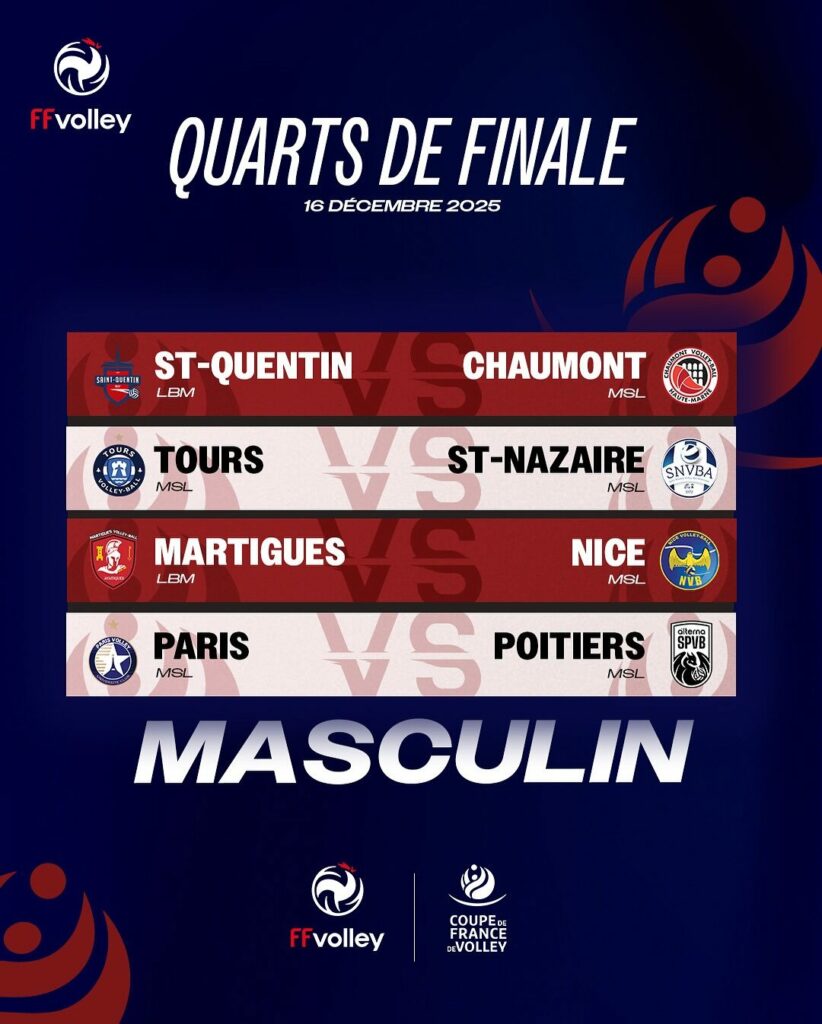 Toutes les équipes encore engagées sont connues, le tirage au sort se fera ce soir (27/11/2025) à 17h, en direct sur la chaîne twitch de la Fédération Française de Volley-Ball.