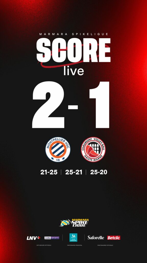 Le MHSC viendra profiter d’une faute directe de Bracko pour prendre un break, 23-21, qu’il ne lâchera plus malgré la belle résistance chaumontaise, 25-23.