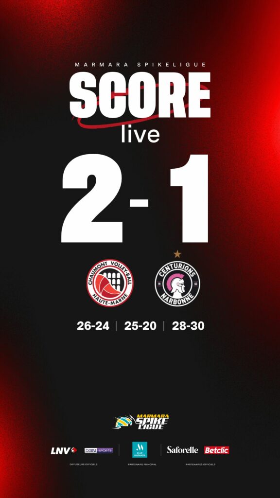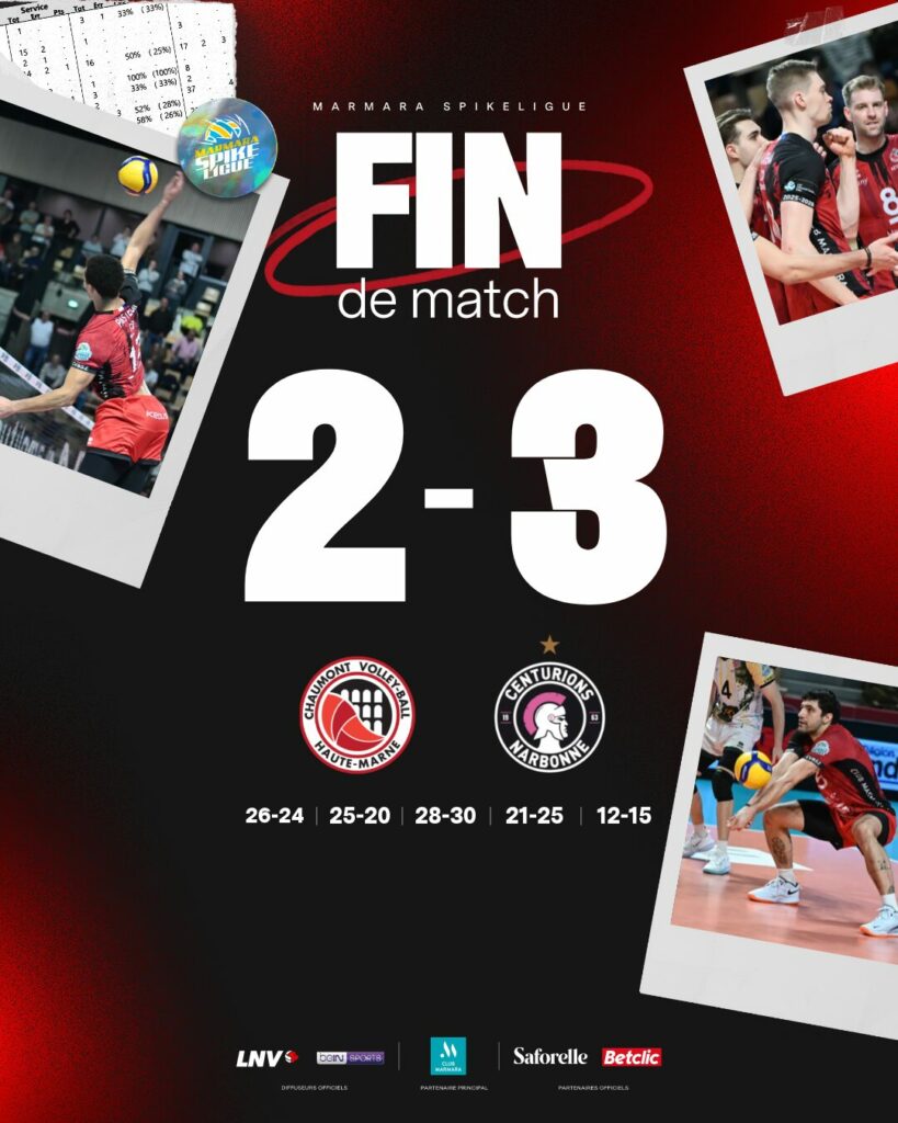 Lors de la 21e journée de Marmara SpikeLigue, le CVB52 s’incline au tie-break face à Narbonne après avoir mené deux sets à zéro. Solides dans les moments clés des deux premières manches, les Chaumontais ont ensuite subi la réaction des Centurions avant de céder dans le tie-break. Un point pris, mais des regrets au vu du scénario.